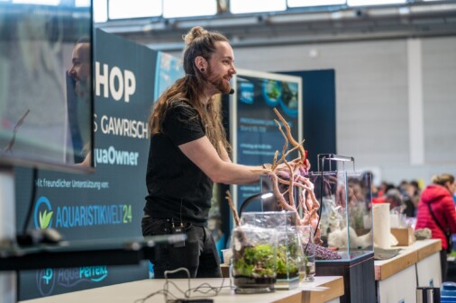 Aquascaping-Influencer Tobias Gawrisch, auch bekannt als „Aquaowner“, richtet täglich ein Aquarium von Grund auf ein und gibt dabei spannende Einblicke in die Welt des modernen Aquascapings. Besucher erleben, wie aus Technik, Pflanzen, Steinen und gestalterischem Feingefühl beeindruckende Unterwasserlandschaften entstehen.
